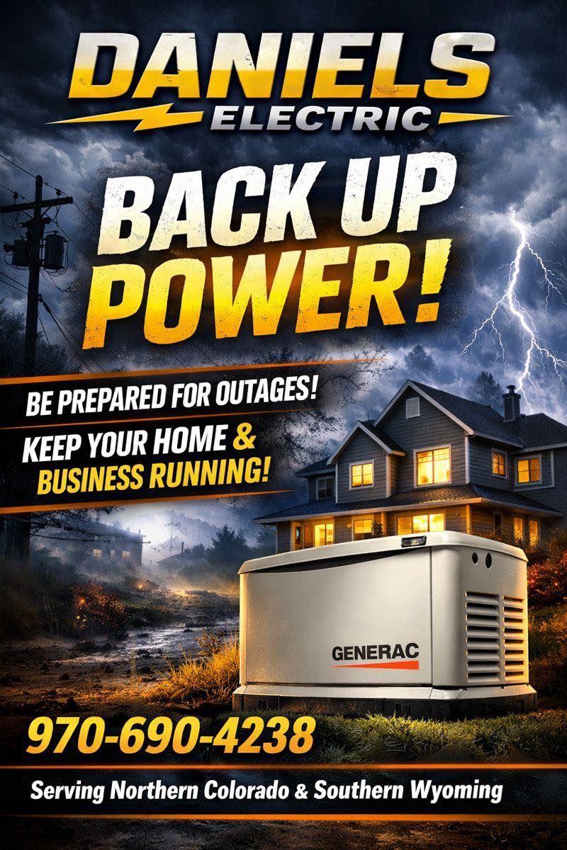 When you’re faced with an electrical outage, work with a local electric company that you can trust. When you need the best whole-house backup generator installers near me in Wellington, CO, contact the friendly experts at Daniels Electric at (970) 690-4238.